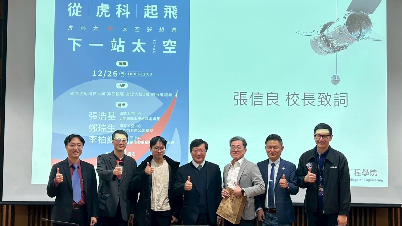 虎科大太空夢想週活動—從[虎科]起飛・下一站太空 2025-12-26 SystemAdmin 本活動以「航太願景 × 火箭教育 × 未來發展」為核心,邀請國內在火箭與航太推動領域具影響力之專家,帶領與會者從實務角度深入了解太空探索、火箭設計、任務規劃與航太產業發展,協助學生拓展職涯視野,邁向太空領域的第一步。 虎科大太空夢想週海報